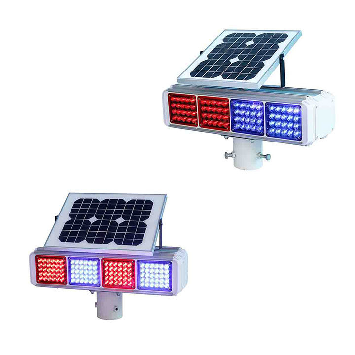 Sinyal lalu lintas bertenaga surya kami memiliki lampu LED dengan panjang gelombang warna merah 625±5nm dan warna biru 460±5nm.memastikan visibilitas maksimum bagi pengemudi.